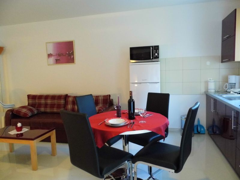 kitchenette, kitchen utensils, pots, cutlery, etc. provided, dish clothes, electric cooker, number of rings: 4, microwave, refrigerator with a freezer compartment, tiles, coffee machine, toaster, table and chairs for every person,