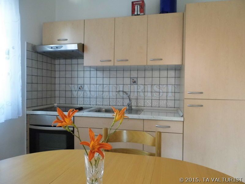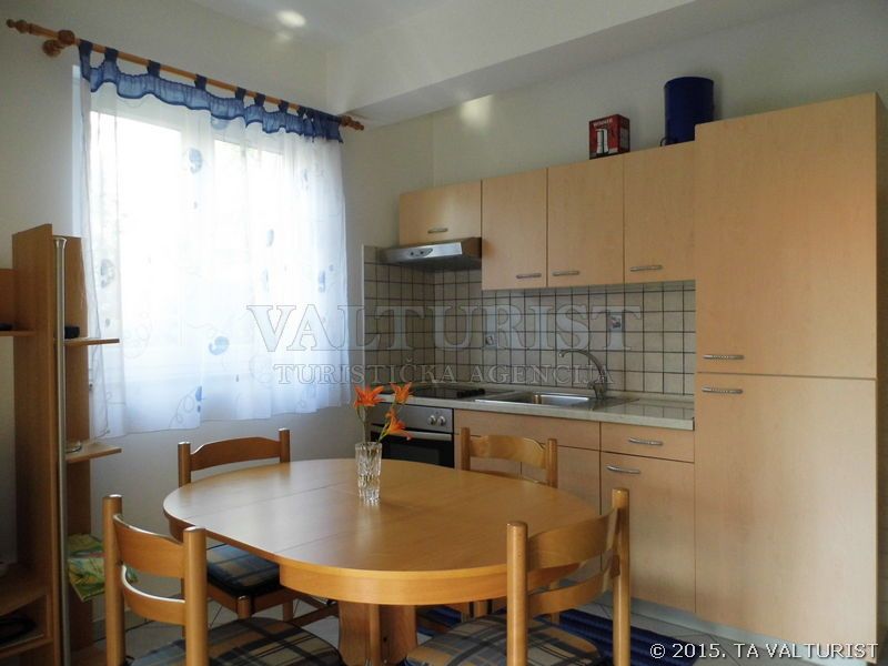 kitchenette, kitchen utensils, pots, cutlery, etc. provided, dish clothes, electric cooker, refrigerator with a freezer compartment, coffee machine, table and chairs for every person, with terrace,