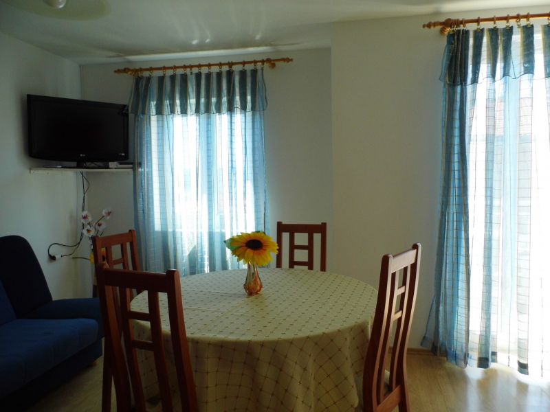 dining room, living room and kitchen - one unit, table and chairs for every person, sofa bed for two people, with balcony,