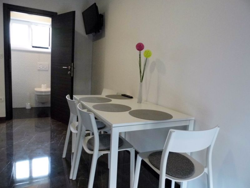 jedna prostorija za blagovaonicu i kuhinju, stol za jelo i sjedalice za sve osobe, sa balkonom, pločice,