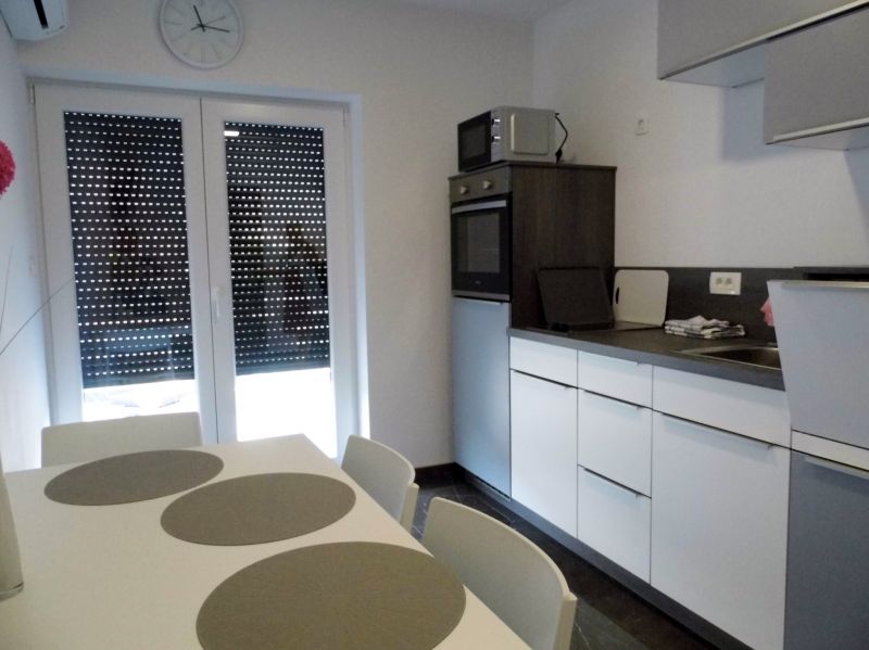 turistička kuhinja, posuđe za jelo i kuhanje, pribor za jelo i sl. nalaze se u objektu, kuhinjske krpe stoje na raspolaganju, štednjak na struju, pećnica, mikrovalna pećnica, hladnjak sa ledenicom, perilica za suđe, filter aparat za kavu, toster, kuhalo za vodu, stol za jelo i sjedalice za sve osobe,