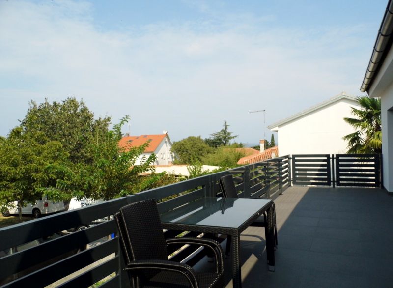 vlastiti balkon, djelomičan pogled na more, sa sjedećom garniturom, suncobran, parkiralište u dvorištu,