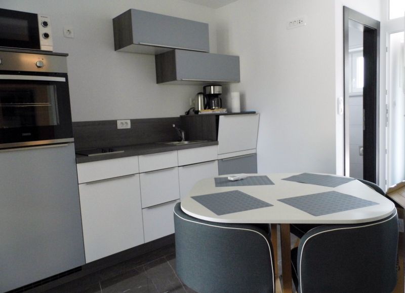 turistička kuhinja, posuđe za jelo i kuhanje, pribor za jelo i sl. nalaze se u objektu, kuhinjske krpe stoje na raspolaganju, štednjak na struju, pećnica, mikrovalna pećnica, hladnjak sa ledenicom, perilica za suđe, filter aparat za kavu, toster, kuhalo za vodu, stol za jelo i sjedalice za sve osobe, sa terasom,