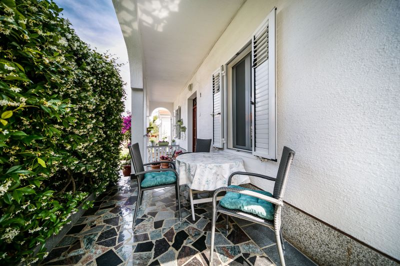 spavaće sobe: 1, prizemlje, miran položaj, blizu mora, lijepo uređeno, klimatizirano, stol za jelo i sjedalice za sve osobe, kauč za spavanje za jednu osobu, sa terasom, pločice,