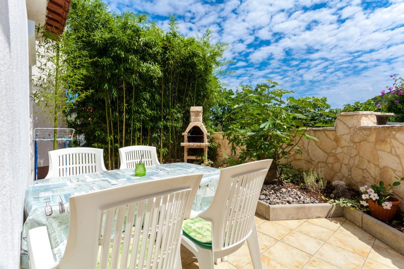 vlastita terasa, sa sjedećom garniturom, ležaljke, moguće donijeti roštilj, parkiralište u dvorištu,