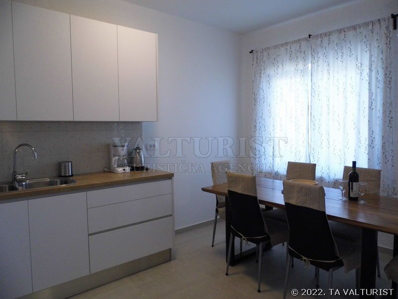 turistička kuhinja, posuđe za jelo i kuhanje, pribor za jelo i sl. nalaze se u objektu, kuhinjske krpe stoje na raspolaganju, štednjak na struju, broj kola na štednjaku: 4, pećnica, hladnjak sa ledenicom, filter aparat za kavu, kuhalo za vodu, stol za jelo i sjedalice za sve osobe,