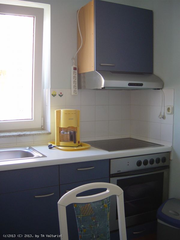 turistička kuhinja, posuđe za jelo i kuhanje, pribor za jelo i sl. nalaze se u objektu, kuhinjske krpe stoje na raspolaganju, štednjak na struju, mikrovalna pećnica, hladnjak sa ledenicom, filter aparat za kavu,