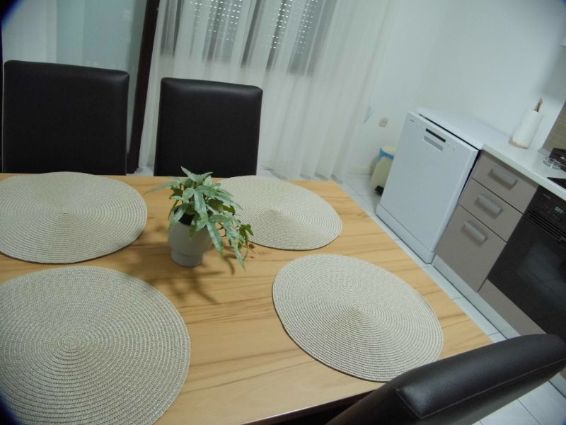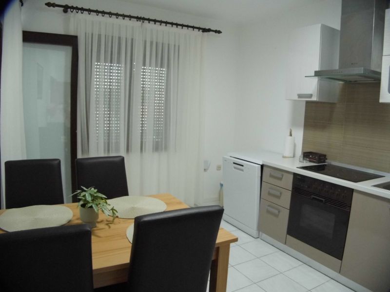 sa balkonom, s pogledom na more, turistička kuhinja, perilica za suđe, posuđe za jelo i kuhanje, pribor za jelo i sl. nalaze se u objektu, kuhinjske krpe stoje na raspolaganju, štednjak na struju, broj kola na štednjaku: 4, pećnica, perilica za suđe, hladnjak sa ledenicom, filter aparat za kavu, stol za jelo i sjedalice za sve osobe,