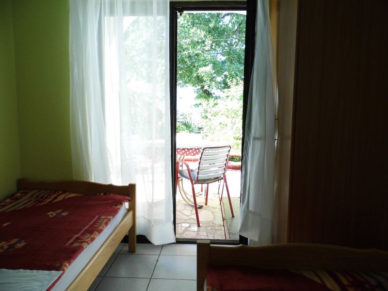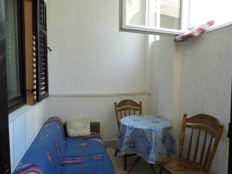jedna prostorija za boravak, blagovaonicu i kuhinju, stol za jelo i sjedalice za sve osobe, kauč za spavanje za jednu osobu, sa terasom, pločice,