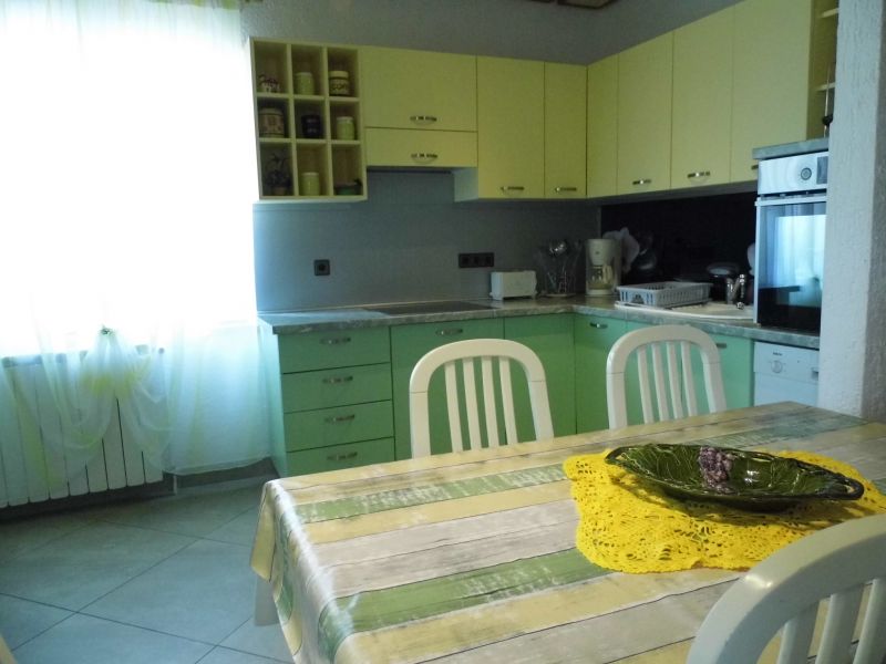 turistička kuhinja, posuđe za jelo i kuhanje, pribor za jelo i sl. nalaze se u objektu, broj kola na štednjaku: 4, hladnjak sa ledenicom, filter aparat za kavu, toster, stol za jelo i sjedalice za sve osobe, perilica za suđe, dvokrevetna soba s bračnim krevetom,
